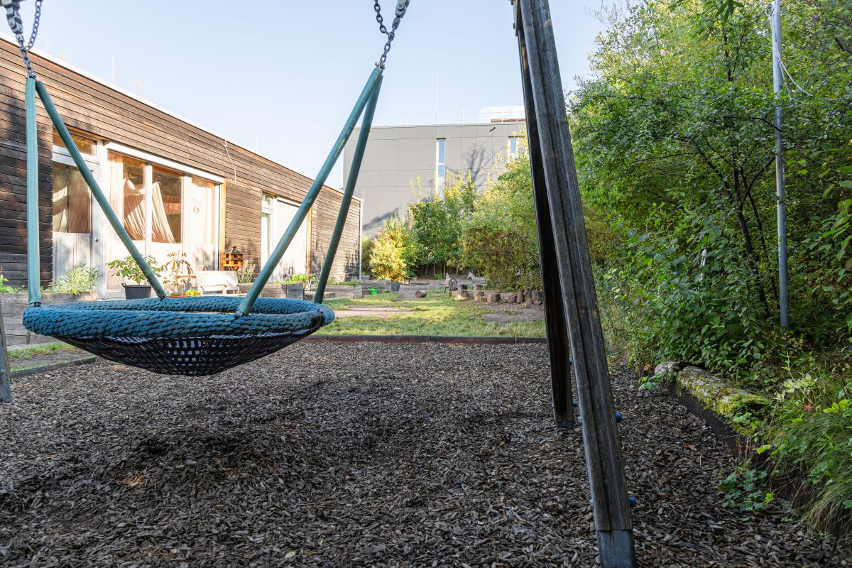 Das Spiel ist der zentrale Bildungsweg in der frühen Kindheit, und wir legen großen Wert darauf, den Kindern vielfältige Spielmöglichkeiten zu bieten. Unser ca. 1000 Quadratmeter großer, naturnaher und terrassenförmig gestalteter Außenbereich mit zahlreichen Bäumen und Büschen bietet den Kindern reichhaltige Möglichkeiten die Natur zu erkunden, sich zu bewegen und miteinander zu interagieren. Der Umgang mit natürlichen Materialien fördert nicht nur die Kreativität, sondern auch das Bewusstsein für die Umwelt und die Bedeutung der Nachhaltigkeit.