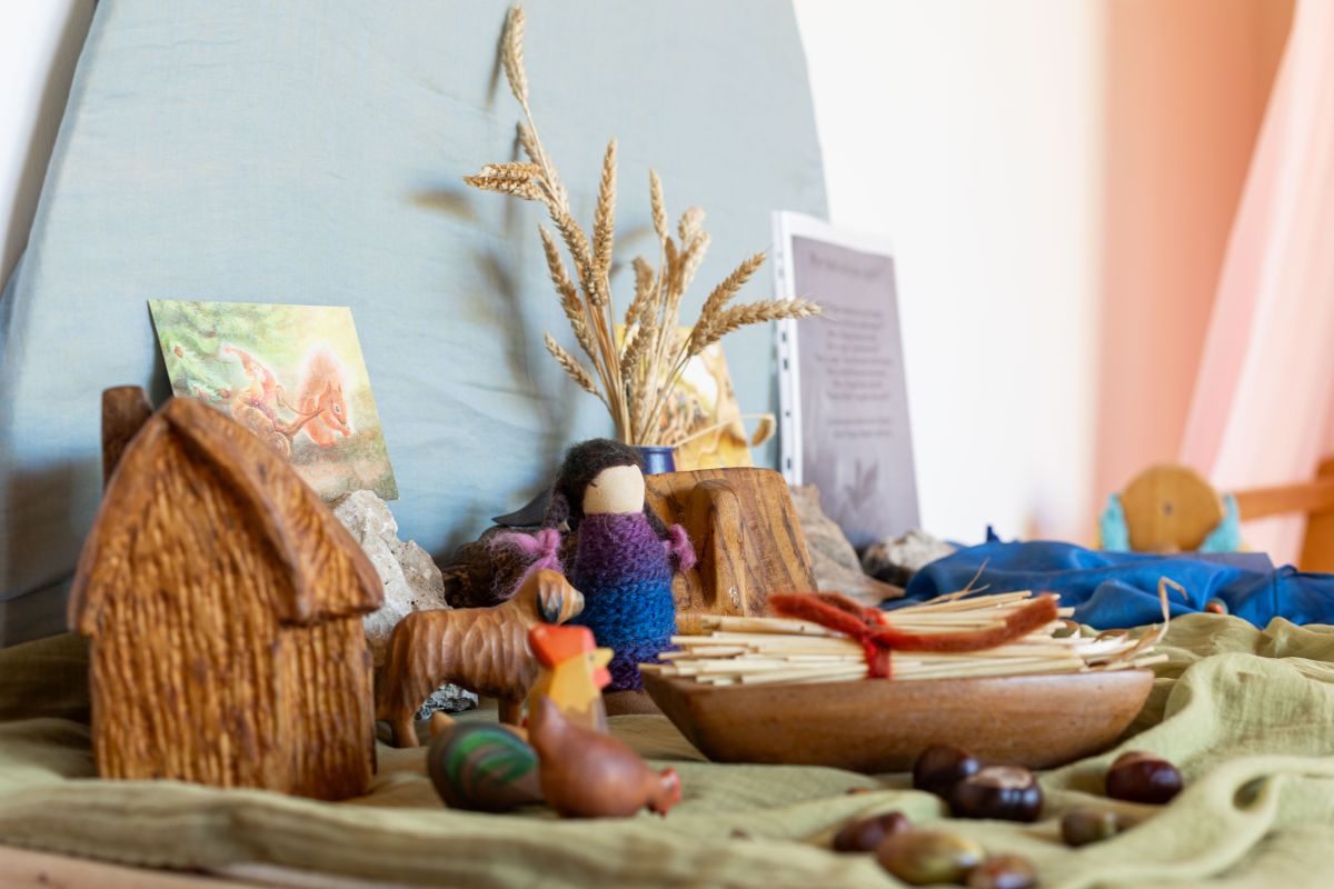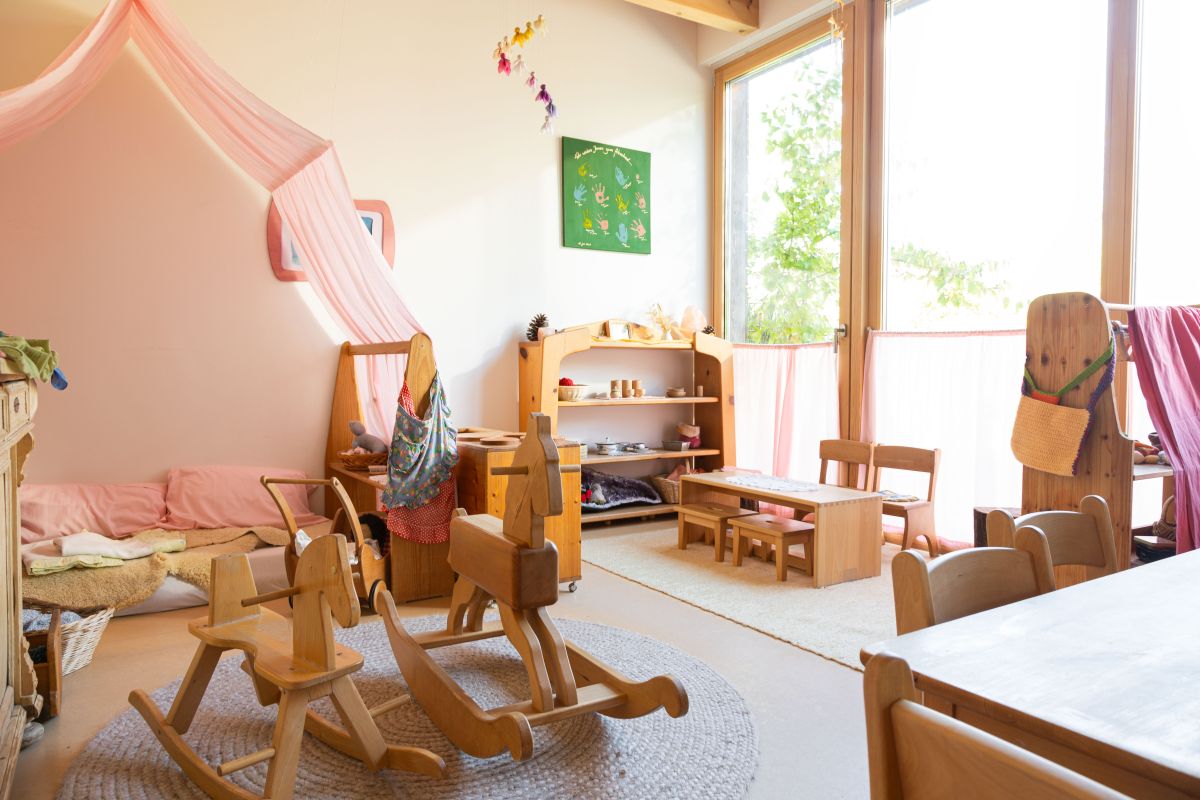 In unserem Waldorfkindergarten sind die Gruppenräume mehr als nur ein Ort zum Spielen – sie sind eine liebevoll gestaltete Hülle, die den Kindern Sicherheit, Geborgenheit und Raum für ihre Entfaltung bietet. Jeder Gruppenraum ist so eingerichtet, dass er eine einladende Atmosphäre schafft, in der die Kinder sich wohlfühlen und kreativ werden können.