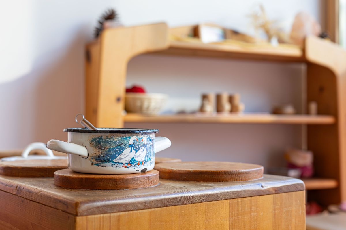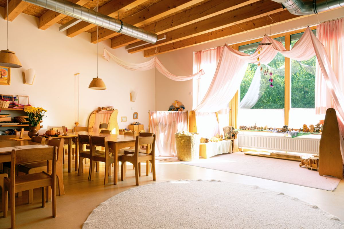 In unserem Waldorfkindergarten sind die Gruppenräume mehr als nur ein Ort zum Spielen – sie sind eine liebevoll gestaltete Hülle, die den Kindern Sicherheit, Geborgenheit und Raum für ihre Entfaltung bietet. Jeder Gruppenraum ist so eingerichtet, dass er eine einladende Atmosphäre schafft, in der die Kinder sich wohlfühlen und kreativ werden können.